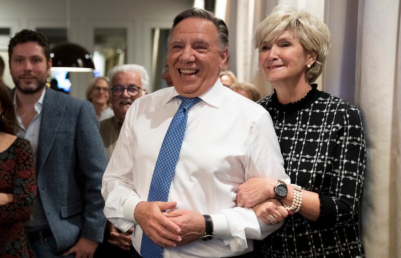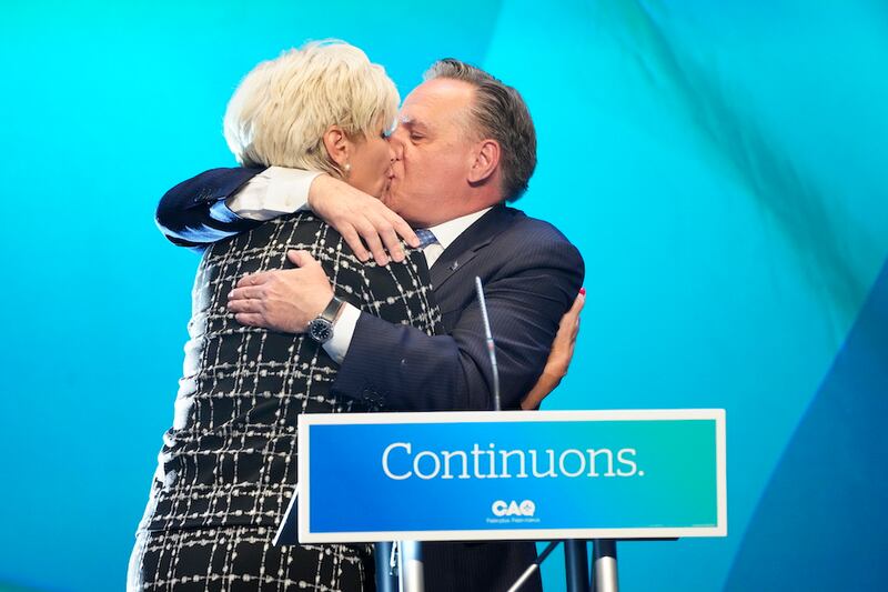 Plus tard ce même soir, dans l'effervescence du quartier général de la Coalition Avenir Québec, François Legault partagait une étreinte émouvante avec son épouse Isabelle Brais en plein cœur de son discours de victoire devant ses partisans.
