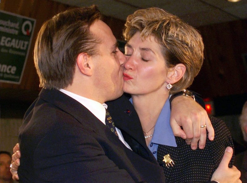 Un retour dans le temps touchant: déjà en 1998, alors qu'il était ministre de l'Industrie et du Commerce, François Legault recevait un baiser de son épouse Isabelle Brais lors d'un rassemblement à Saint-Roch-de-l'Achigan.