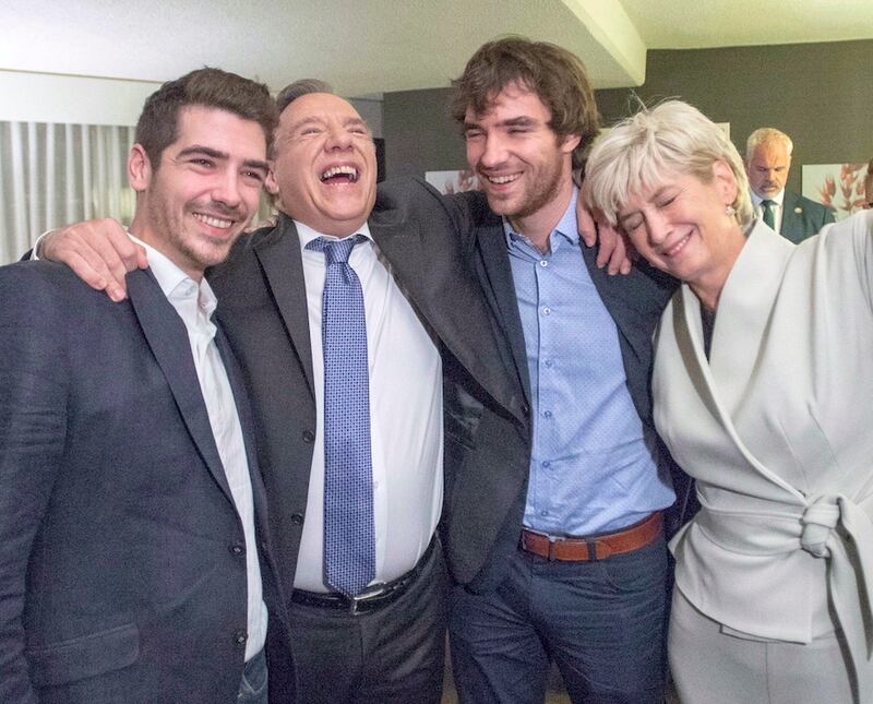 Un moment de pur bonheur familial: au soir du 1er octobre 2018 à Québec, François Legault célèbrait sur cette photo sa toute première victoire électorale entouré de son épouse Isabelle Brais et de leurs deux fils, Xavier et Victor.
