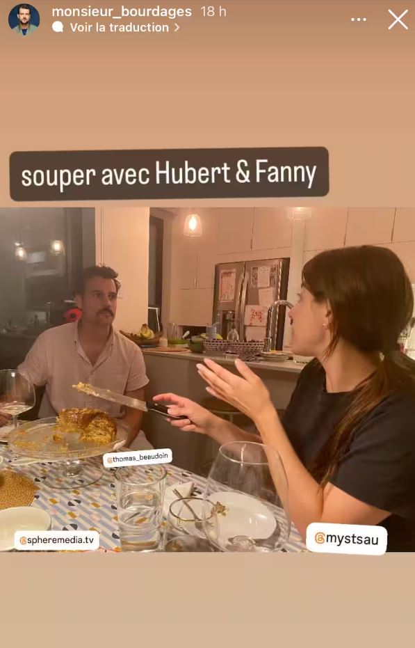Ce moment complice a été capturé par Ludovick Bourdages, le conjoint de Mylène, qui a partagé une photo des deux comédiens en pleine conversation lors d'un souper entre amis.