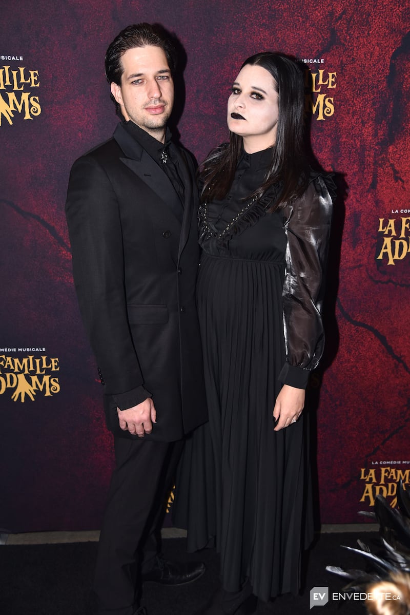 Rosalie Taillefer-Simard et son chum ont fait une apparition remarquée sur le tapis rouge de La Famille Addams, ce lundi à l'Espace St-Denis de Montréal.