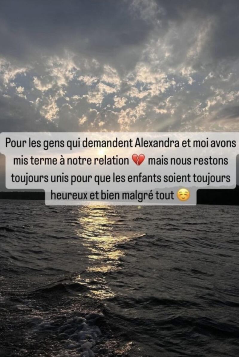 «Pour les gens qui demandent, Alexandra et moi avons mis un terme à notre relation \ud83d\udc94 mais nous retons toujours unis pour que les enfants soient toujours heurex et bien malgré tout \ud83d\ude42», confie Patrick sur Instagram.