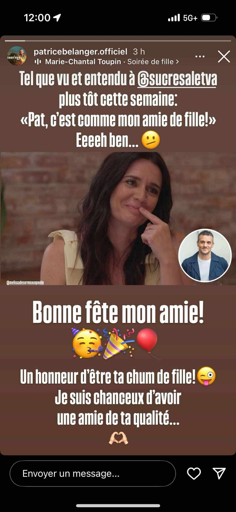 Ça a notamment été le cas de Patrice Bélanger qui a rappelé ce que Mélissa Désormeaux-Poulin a dit à son sujet cette semaine à Sucré Salé, soit qu’elle le considérait comme «son amie de fille».