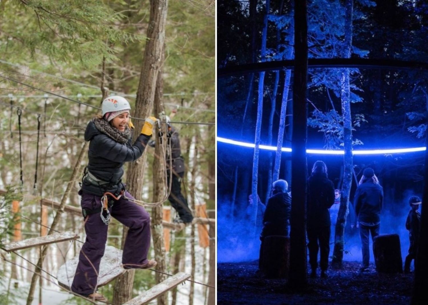 Les parcours aériens sont de plus en plus nombreux à travers le Québec et plusieurs d’entre eux permettent dorénavant aux adeptes de se promener d'arbre en arbre même en hiver. Vous pourrez admirer la nature à partir d'un autre point de vue et mettre vos habiletés en pratique.