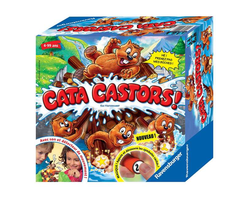 Cata Castors est un jeu d'adresse que les enfants de tous âges apprécieront. Le but du jeu : retirer doucement les troncs d'arbre un à un du barrage de Timber le castor sans qu'il ne s'en aperçoive.