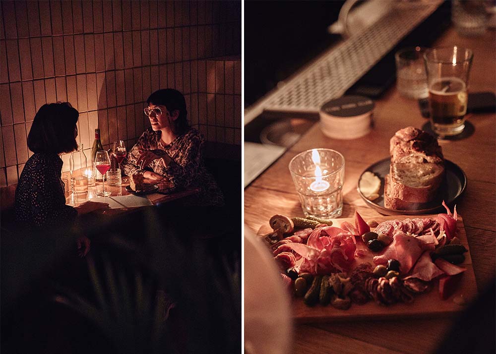 La portion nourriture et boisson est menée par deux sommelières d'expérience, Frédérique-Anne Brosseau (Vin Oui) et Sydney Auger (Paquebot) qui proposent ici une carte remplie de vins natures et décomplexés, et une cheffe, Julia Giraud (Buvette chez Simone) qui offre plusieurs planches et petits plats à partager, parfaits pour l'apéro.