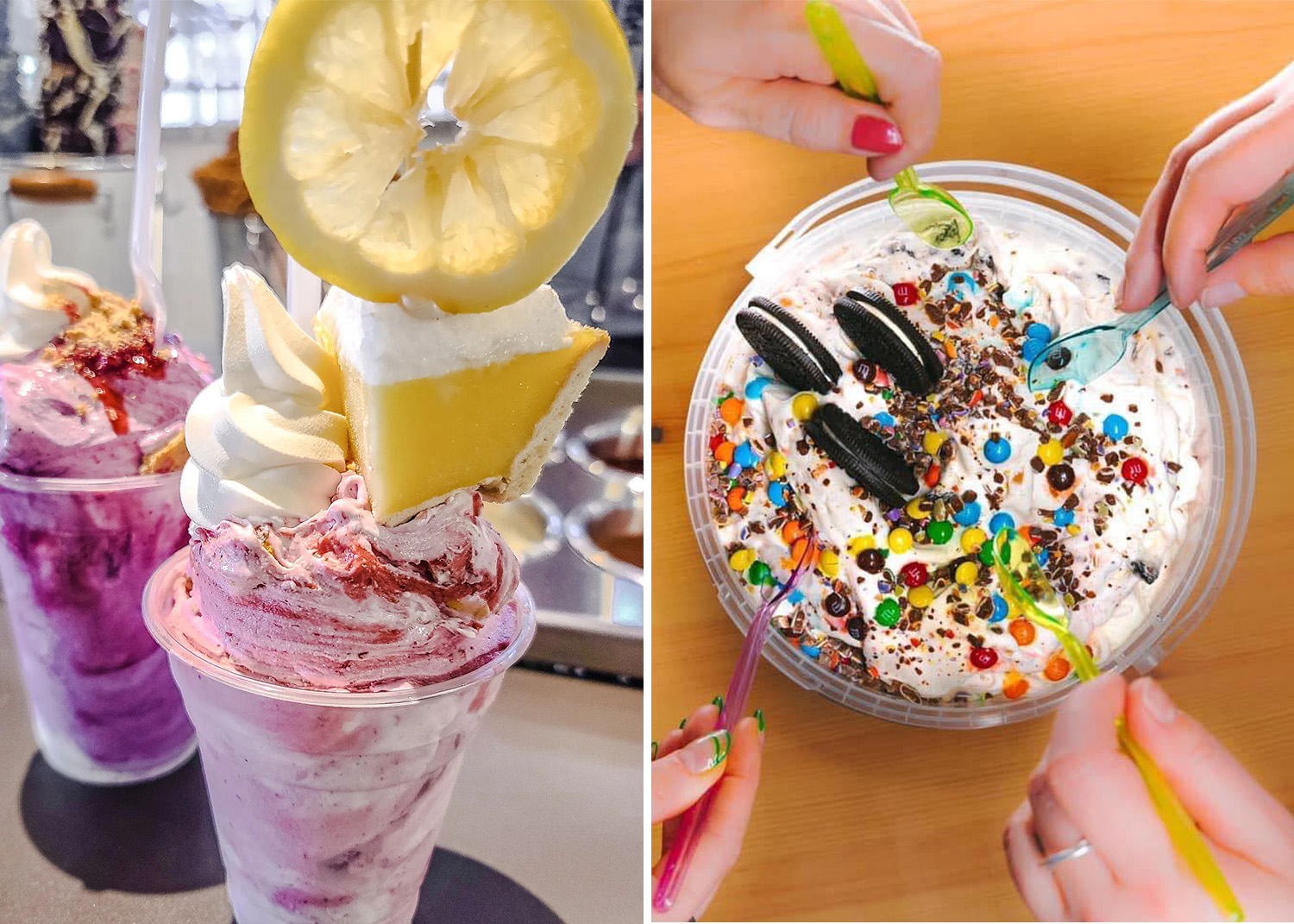 On aime le style extravagant de icyvibes, cette crèmerie et chocolaterie qui compte deux adresses au Québec, l’une à Sainte-Anne-de-Bellevue et l’autre à Dollard-des-Ormeaux. La crèmerie est spécialisée dans les trempages chocolatés. On choisit notre dip pour tremper notre crème molle à la vanille (ou au chocolat, pourquoi pas?) ou y va plutôt avec un sundae, au choix.