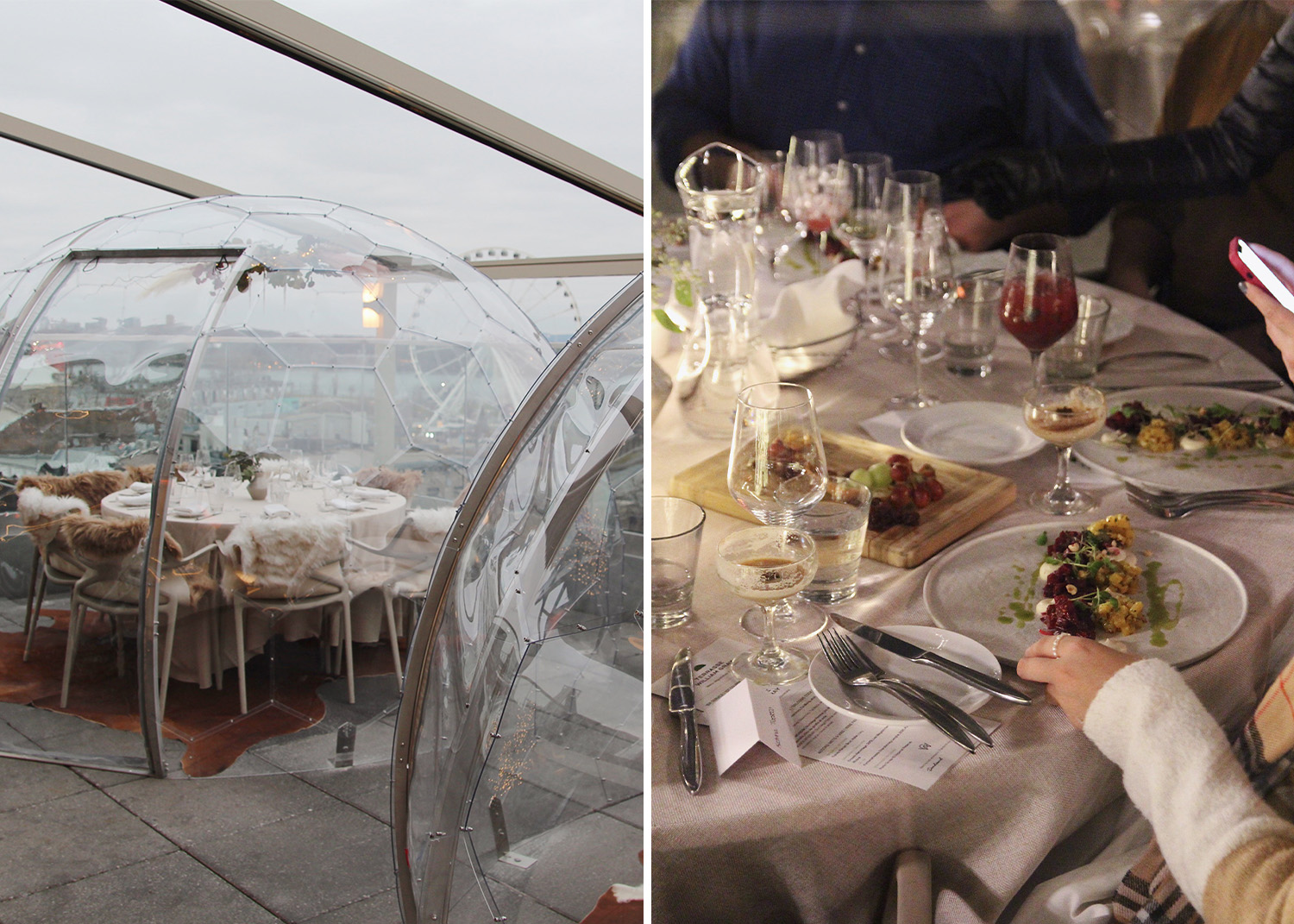 Les dômes chauffés ont été installés sur la terrasse, transformée pour la saison hivernale en winter wonderland chaleureux et douillet. C'est tout simplement magique!