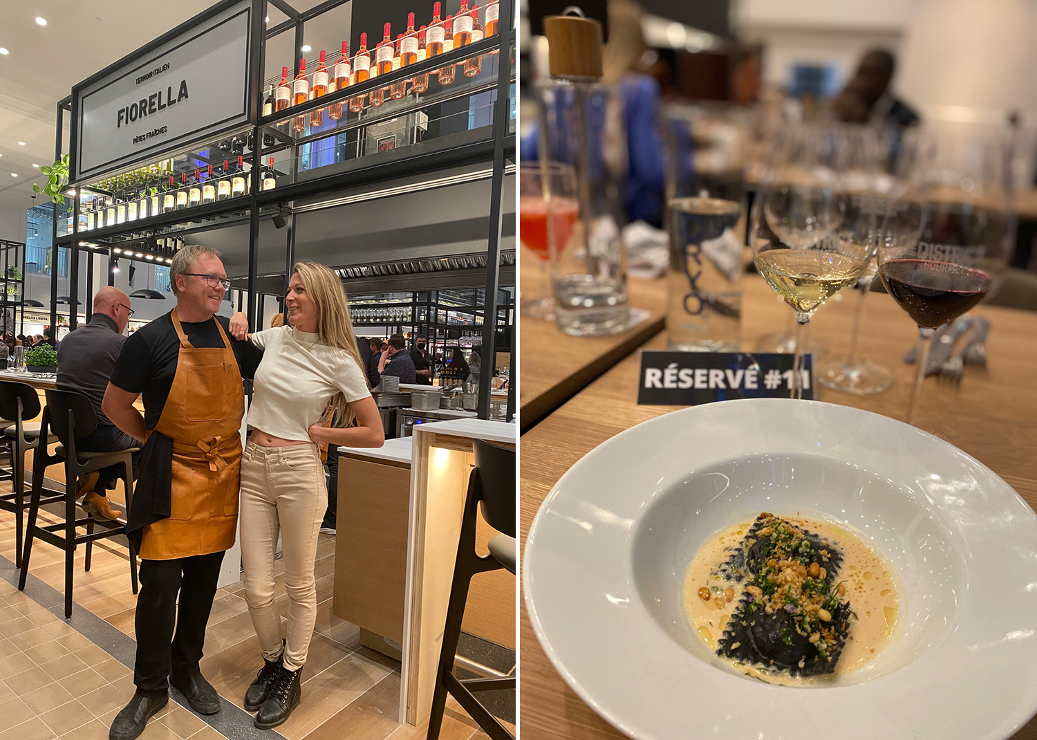 Si les convives ne s’entendent pas sur le choix du menu, il est toujours possible de choisir l’une des tables communales installées au milieu de l’atrium, afin de commander de n’importe quel restaurant. Sinon, on s’assoit par exemple au comptoir du Fiorella, le nouveau projet du chef Laurent Godbout, qui propose un menu axé sur les pâtes fraîches, et l’on se fait servir directement par l’équipe de cuisine.
