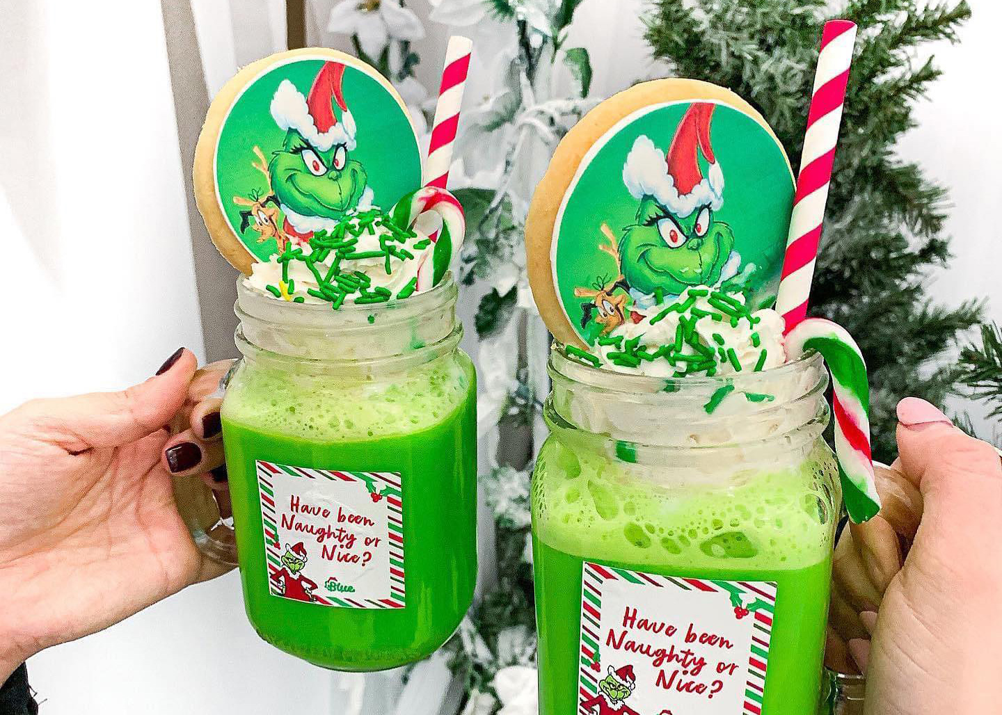 Notre coup de coeur de ce nouveau menu: un chocolat chaud de couleur vert, qui est en fait composé de chocolat blanc. Ce dernier est servi dans un pot Masson, puis recouvert de crème fouettée et d'un biscuit décoré aux couleurs du célèbre Grincheux.
