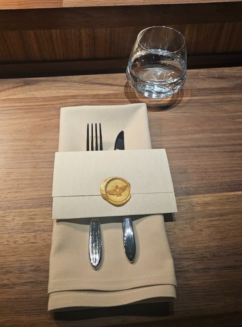 Lors de notre visite au Mezcla, un menu de 11 services était proposé. Avant de débuter notre expérience culinaire, on nous propose de faire une dégustation à l’aveugle du menu qui ressemble presque à une lettre provenant de Poudlard avec son sceau en cire.