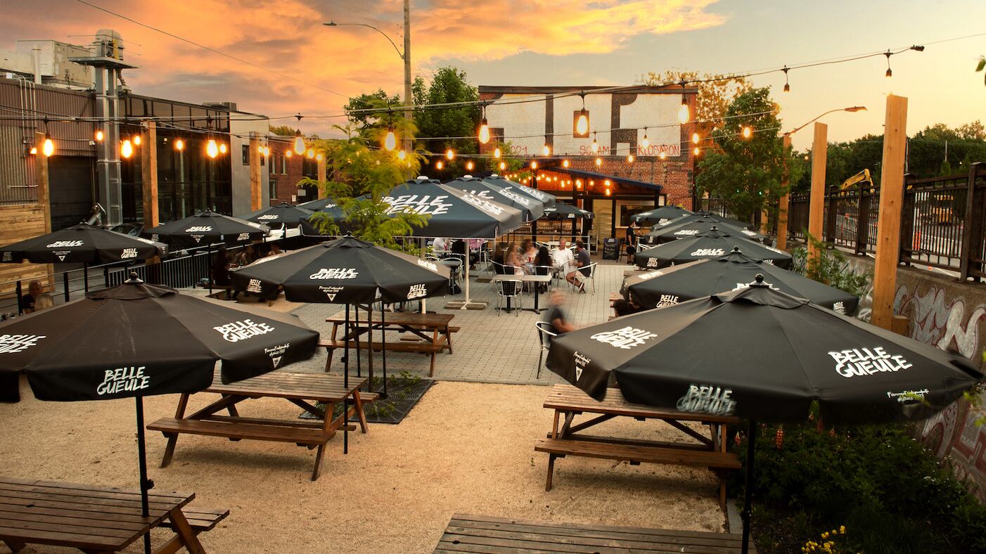 Bien nommée Les Quartiers Belle Gueule, cette terrasse ensoleillée propose plusieurs sections et, donc, différentes ambiances: un long bar où l'on peut s'attabler, une section lounge avec des tables hautes de style cocktail. Mais, il y a aussi un vaste espace rempli de tables de pique-nique et parasols, pour profiter d'une palette de dégustation de bières entre amis.