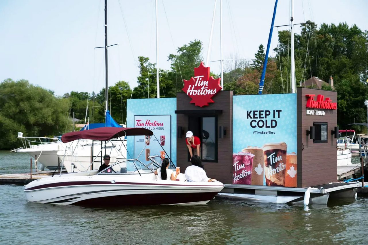 C’est le tout premier «boat-thru» qui a ouvert ses portes le temps d’un weekend sur le lac Scugog en Ontario, et ça a été un très grand succès. Les embarcations marines étaient invitées à se rendre à la marina Beacon de Casarea pour récupérer un délicieux breuvage glacé de Tim Hortons, qui leur était servi à même leur bateau.