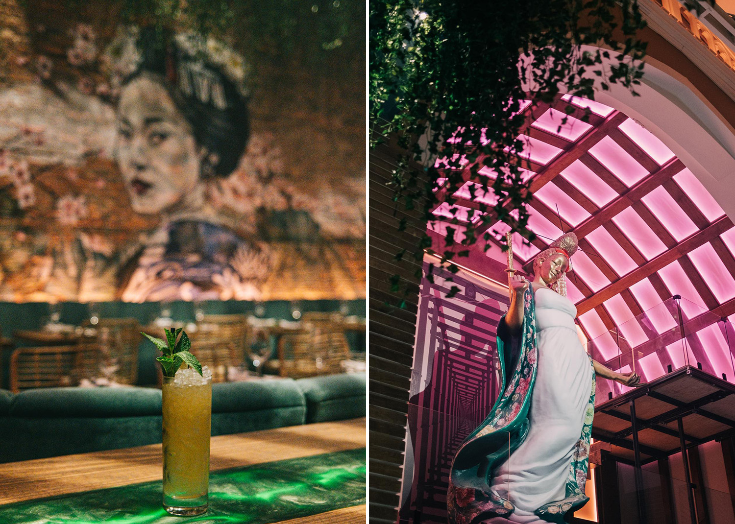Partout, le décor impressionne, alors que le souci du détail et le design d’inspiration nippon est pris très au sérieux. Pensons à la statue Geisha de 15 pieds de hauteur qui soutient le DJ booth dans la paume de sa main, à la salle des miroirs à l’entrée, ou encore aux arbres en fleurs installés dans les escaliers.