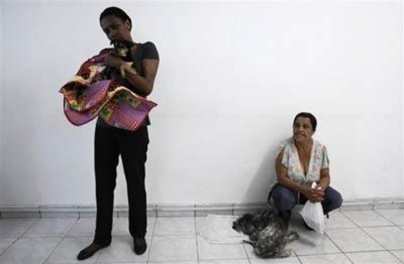 Ces femmes attendent pour l'examen médical de leur chien, à l'hôpital vétérinaire Anclivepa-SP de Sao Paolo.
