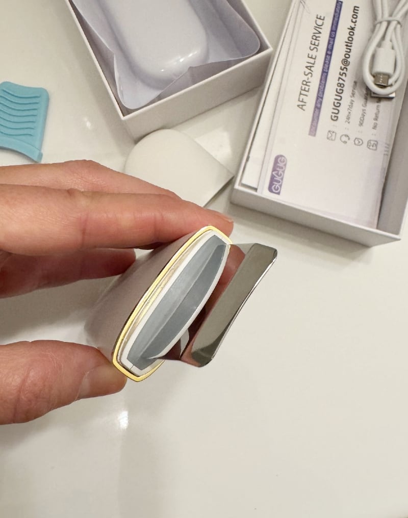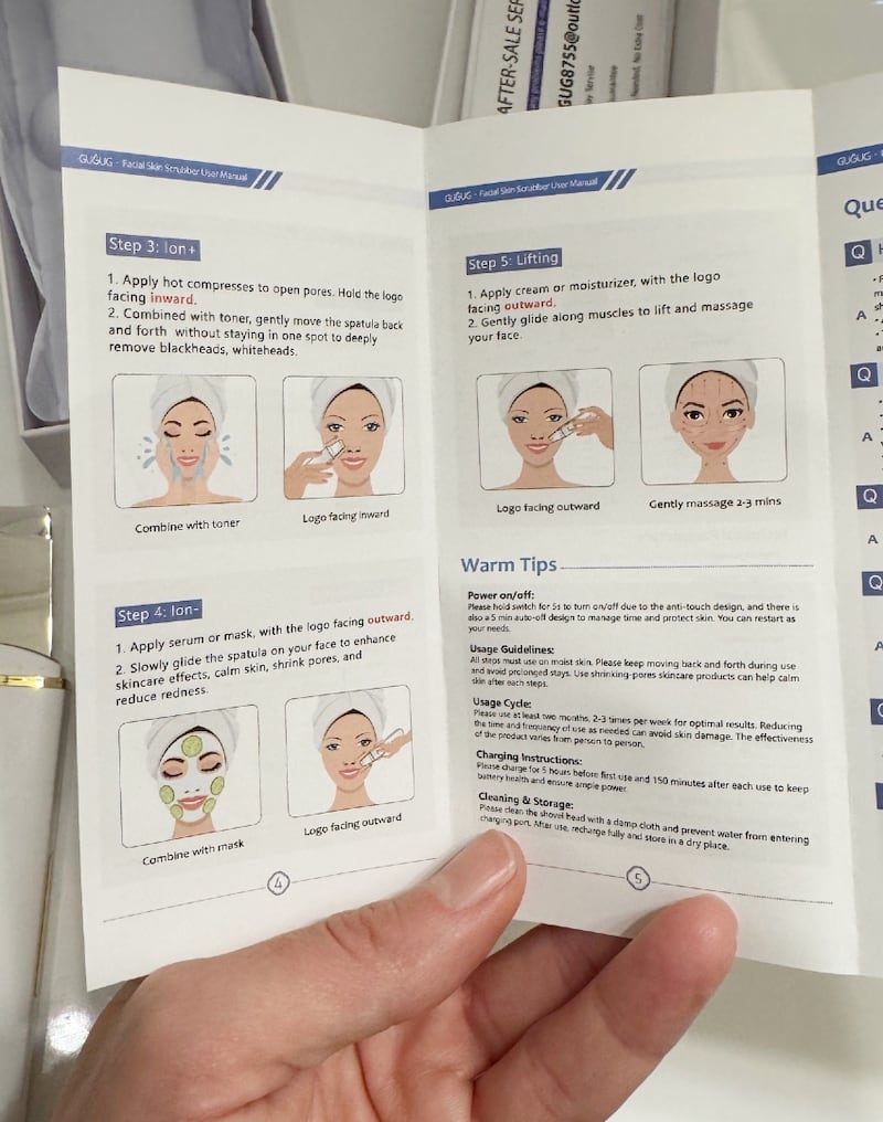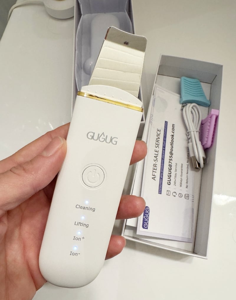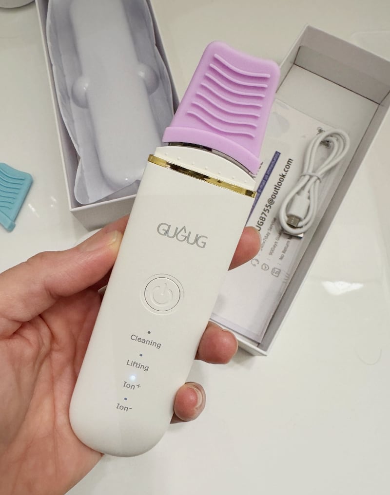 Ce grattoir de peau vient avec deux têtes en silicone interchangeables, conçues pour s’adapter aux différentes zones du visage et offrir un soin précis et confortable. Grâce à ses quatre modes d’utilisation (nettoyage en profondeur, stimulation ionique, absorption des soins et massage lifting), il promet de purifier la peau, d’éliminer les impuretés et de favoriser l’éclat du teint.