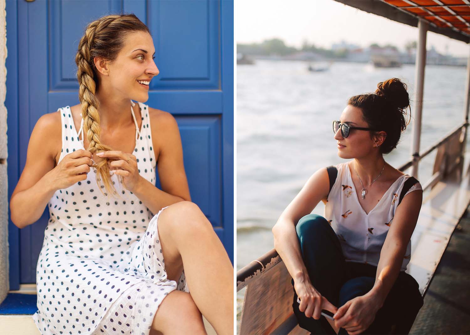 Lorsqu'il fait chaud et humide et que le brushing ne coopère pas du tout, vaut mieux se tourner vers des coiffures remontées et/ou qui dégagent le visage. Et malgré la canicule, sachez qu'il est possible de conserver un look joli et soigné.