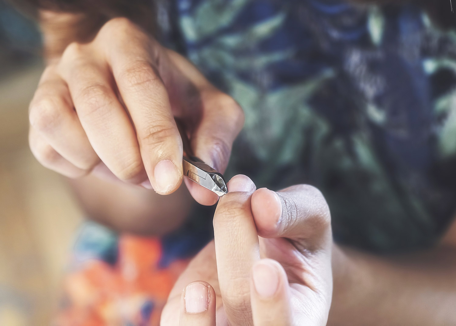Avant de couper ses cuticules, on les fait d’abord ramollir en les trempant dans de l’eau tiède.