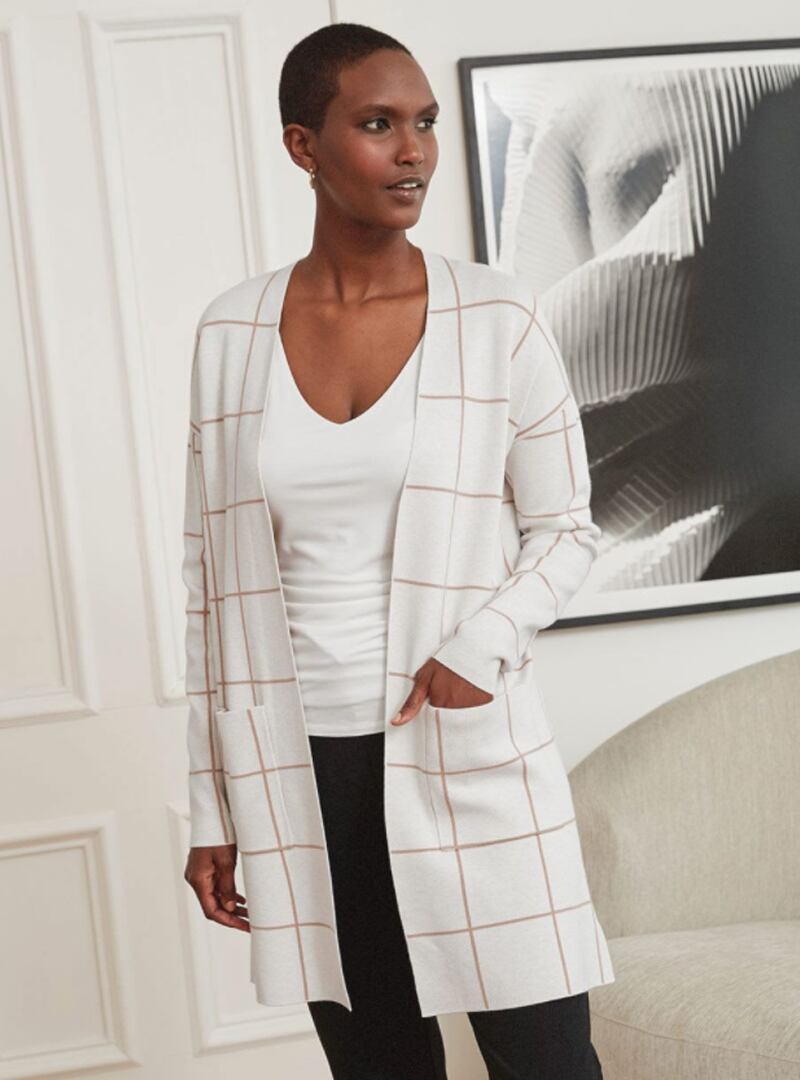 Cardigan long ouvert à carreaux (couleur blanc cassé), Rw&Co - 99,90 $