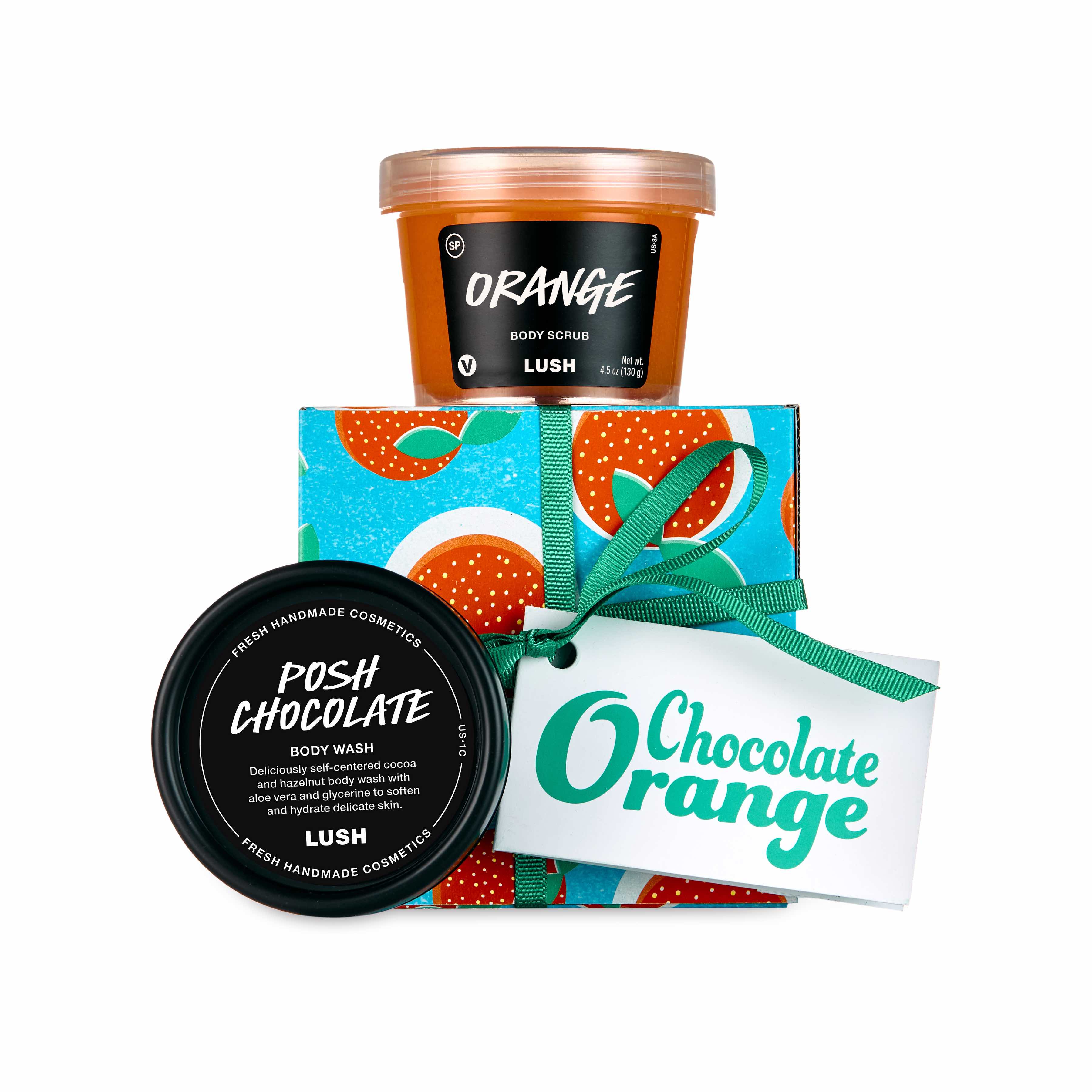 Ce cadeau de Noël arrive déjà emballé dans un papier entièrement recyclé et contient le gel douche Posh Chocolate au doux parfum de choco-noisette et l’exfoliant Orange pour une peau délicieusement douce.