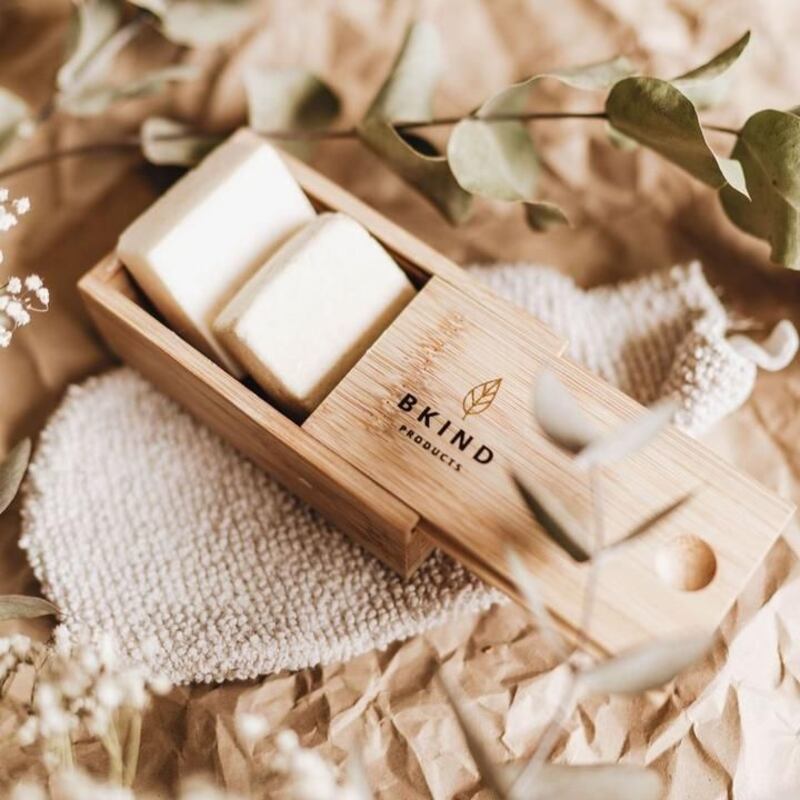 Shampoing et revitalisant en barre sans emballage dans une boîte en bambou, BKIND - 46$