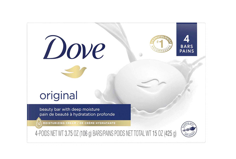 3. Savon : Pain de beauté blanc Dove, 4 barres