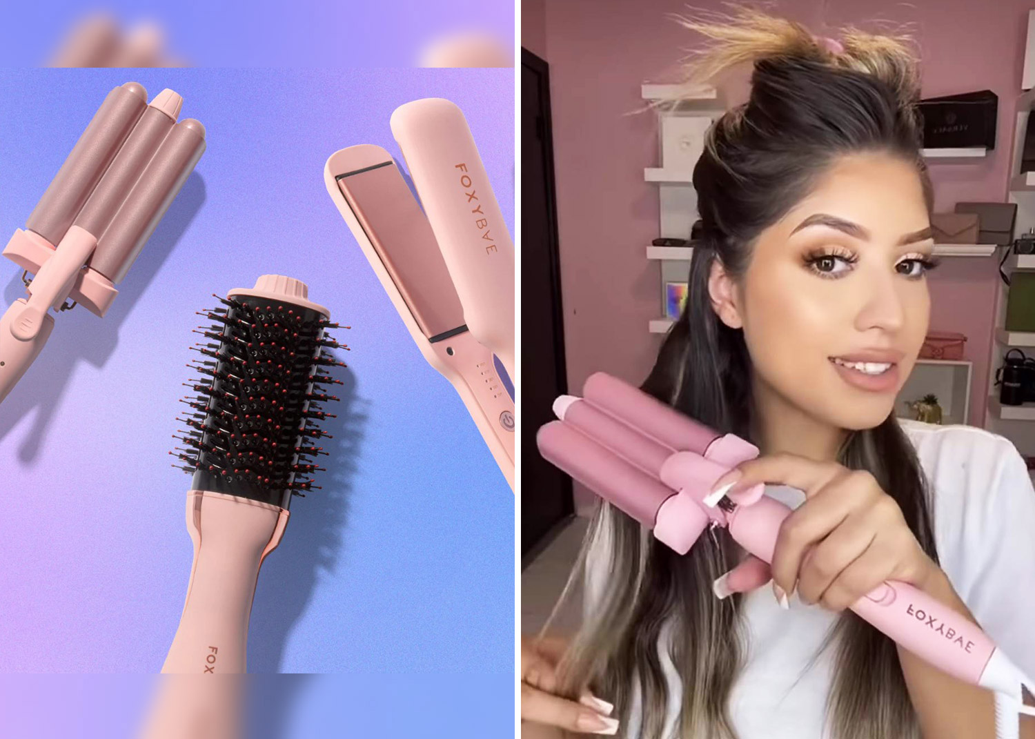 Cette offre du tonnerre inclut 3 outils capillaires incontournables pour réaliser toutes vos coiffures préférées : un fer à onduler un fer plat et une brosse-séchoir :