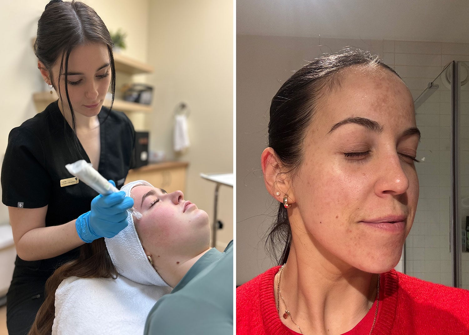 On m’a rassurée lors de mon évaluation en me confirmant que ce traitement était effectivement bien adapté à ma condition de peau et allait pouvoir cibler les petits défauts que je souhaitais corriger : hyperpigmentation due au mélasma, cicatrices d’acné, taches de soleil, petites ridules et texture générale de la peau.