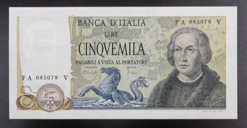 Christophe Colomb, le célèbre explorateur italien, celui-là même qui avait cru être arrivé en Inde alors qu’il foulait l’Amérique, y est aussi allé de quelques prédictions concernant l’avenir de l’humanité. Il a entre autres écrit en 1501 dans son Livre des prophéties que le monde finirait en 1656. Un peu plus tard, Colomb a rajusté ses dates. Selon lui, le monde, créé en 5343 av. J.-C., allait durer 7000 ans. Ce qui signifiait, selon ses calculs, que la fin du monde allait survenir en 1658. On est bien content qu’il se soit encore trompé. * Sur la photo, un billet de 5000 lires italiennes datant des années 1970 et représentant Christophe Colomb, né en 1451 et mort en 1506.