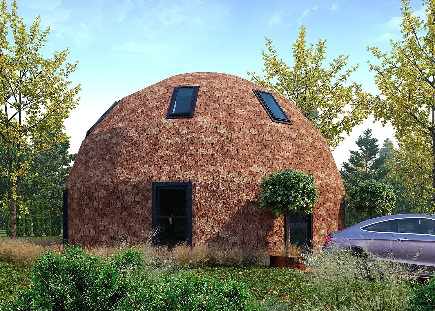 Ce modèle en forme de dôme offre une superficie de 986 pieds carrés. La minimaison compte deux étages, et le deuxième est une mezzanine de 266 pieds carrés.