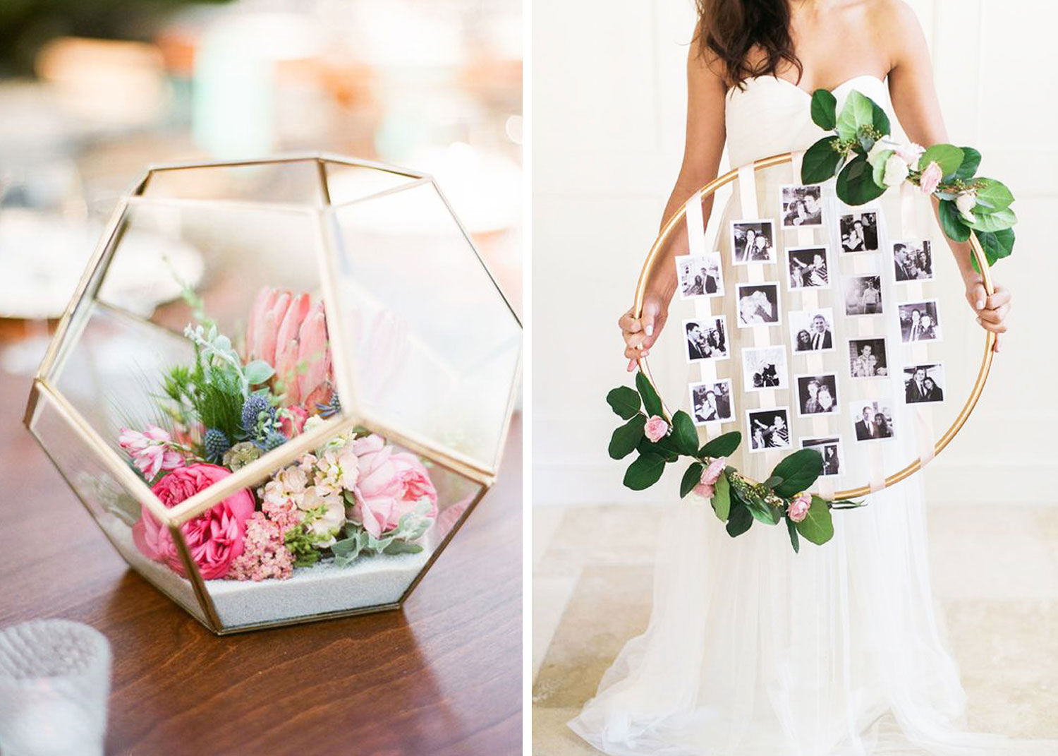 Un élément déco splendide qui pourrait parfaitement servir comme centre de table. À défaut d'avoir le budget pour utiliser de réelles fleurs, vous pourriez toujours en utiliser des fausses achetées en magasins ou en ligne (plusieurs modèles disponibles sur Etsy)!