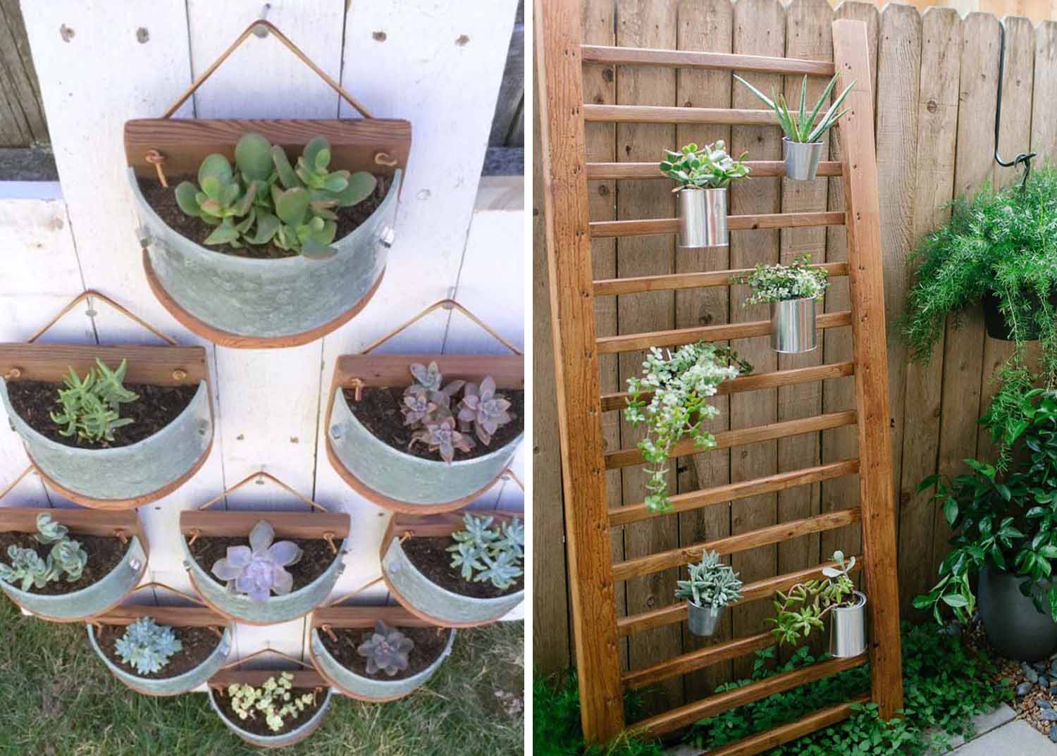 Ici, l’aspect verdoyant s’exprime à travers des cadres. C’est une bonne idée pour les endroits où les végétaux ne survivraient pas facilement ou si votre cour est couverte de béton par exemple. Pour reproduire le look, servez-vous de vieux cadres que vous avez à la maison, peignez-les, accrochez-les à votre clôture et le tour est joué!