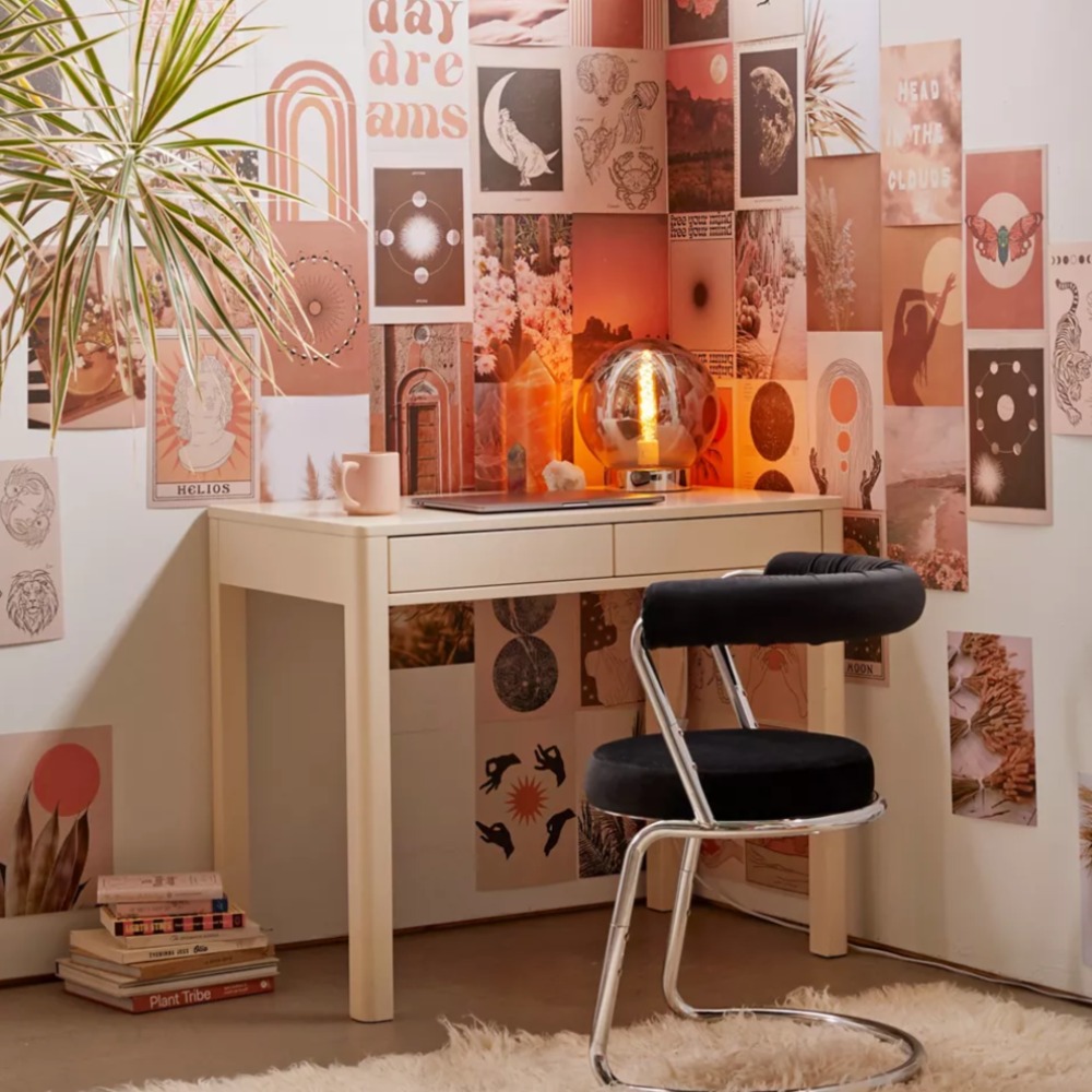 Chez Urban Outfitters, les trouvailles déco ne manquent pas! Que vous cherchiez à aménager un bureau à la maison, un petit coin inspirant pour étudier ou un espace de création, par exemple, vous trouverez tout ce dont vous avez besoin sous un même toit, à commencer par une table de travail aussi design que pratique et une lampe amusante en forme d’animal ou de… patate géante!