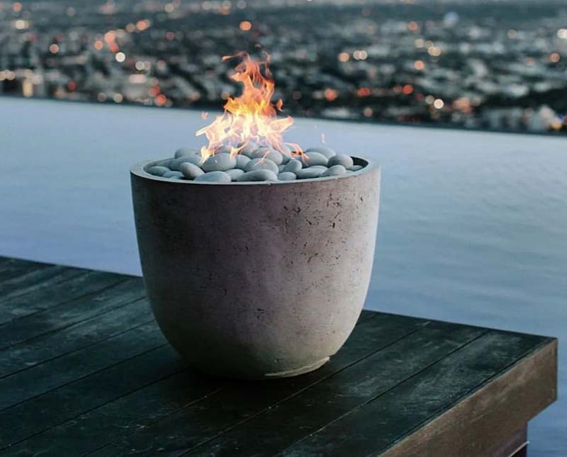 Pour un foyer d'ambiance qui prend peu d'espace et qui ne nécessite pas d'entretien, créez un petit bol de feu. Vu son format, il peut facilement se déplacer et servir de source lumineuse sur une table à manger extérieure.