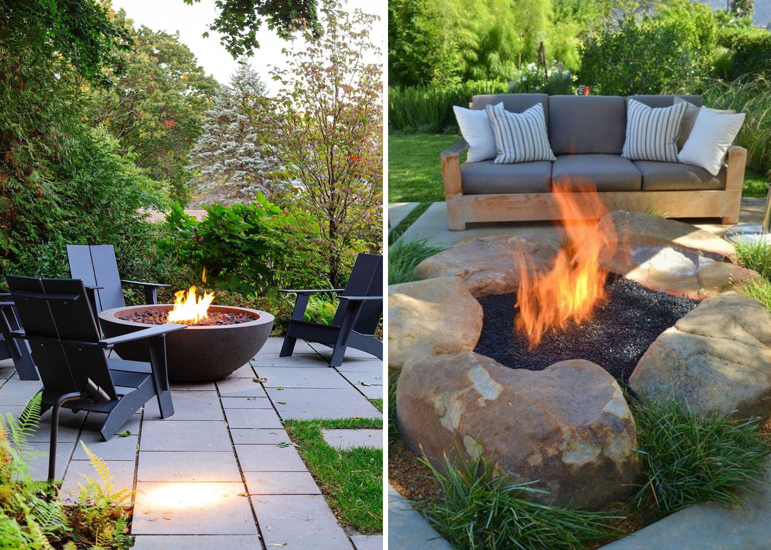 On retrouve souvent des pierres naturelles en aménagement paysager, parmi de jolis bosquets de fleurs colorées. Celles-ci peuvent également servir pour la construction d'un foyer extérieur.