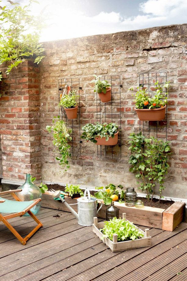 Les petites terrasses, les cours et les balcons sont les endroits idéals pour créer des jardins en pots. Maximise l'exposition au soleil et chaque pied carré disponible en utilisant les surfaces verticales à ta disposition.