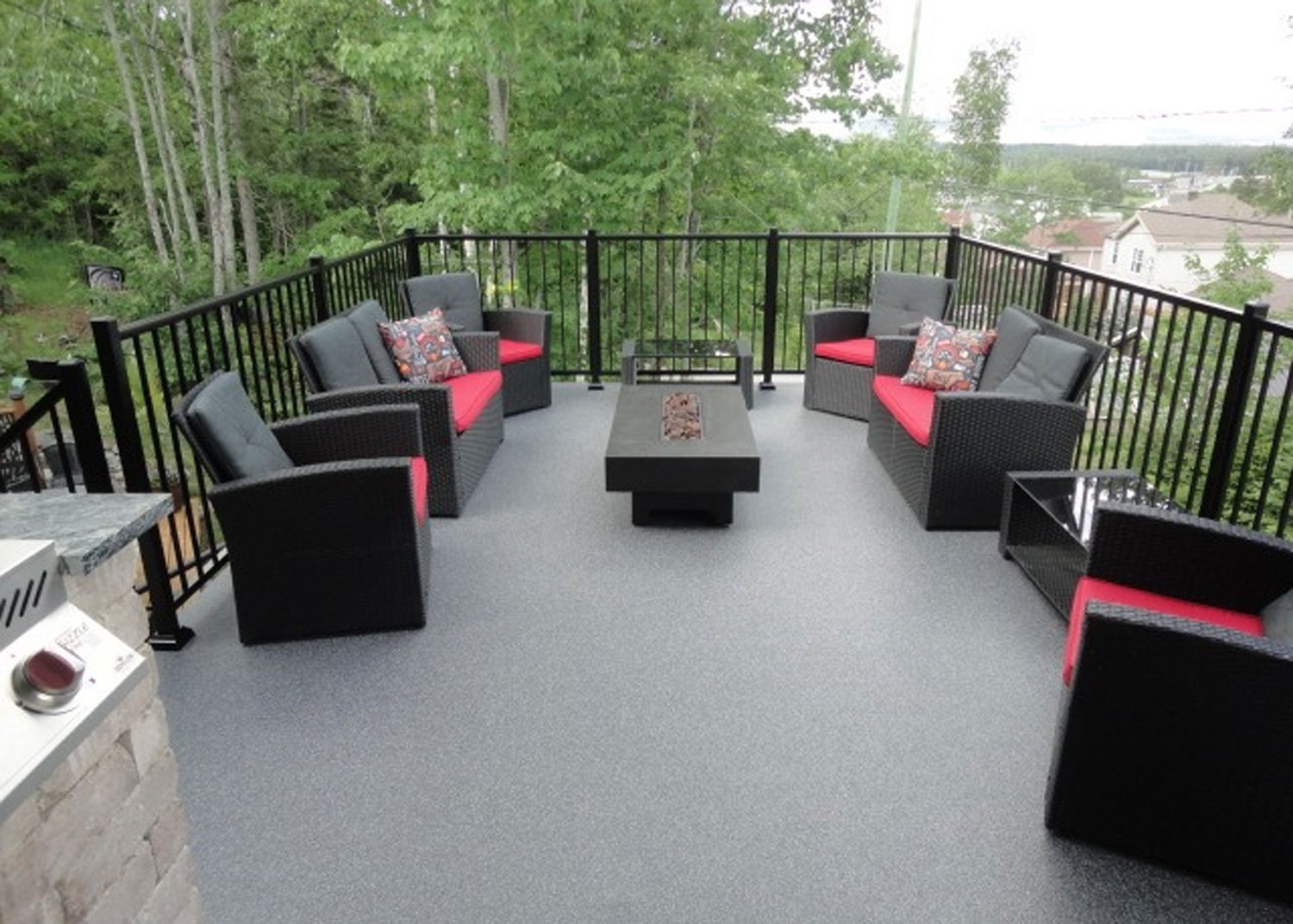 Bien que plusieurs teintes soient disponibles, on suggère de prioriser une couleur pâle. La surface d’une terrasse foncée qui est exposée longtemps au soleil peut devenir très chaude et finalement inconfortable. De plus, la chaleur engendre une dilatation du produit et crée ainsi des contractions. Si elles surviennent fréquemment, ces tensions provoquent des fissures. En présence de neige, ce matériau peut devenir glissant.