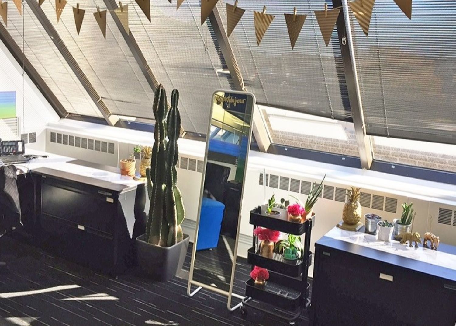 Pour vous inspirer, nous avons décoré nos bureaux et nous vous montrons comment il est possible d’embellir son espace de travail facilement et à petit budget, en utilisant des décorations temporaires qu’on peut retirer sans problème.
