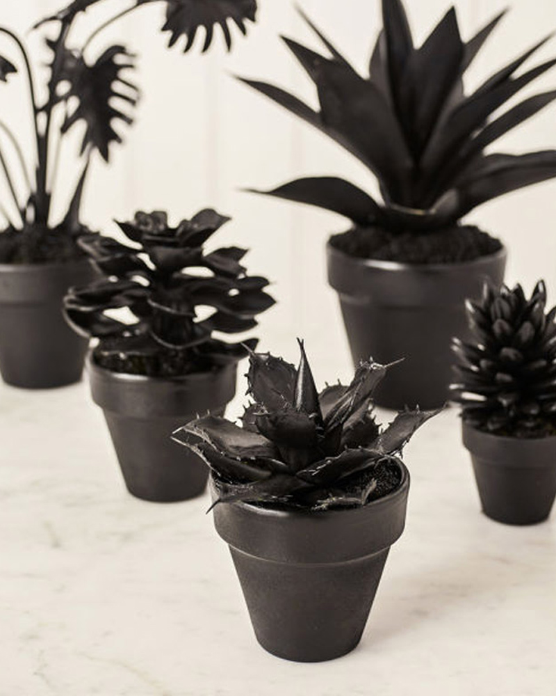 Histoire de donner un petit look hanté à votre déco, vaporisez des fausses plantes de peinture noire! Déposez-les sur des étagères, dans une bibliothèque ou au centre de votre table à dîner pour un maximum d’effet! Elles auront l’air tout droit sorties de la série Stranger Things!