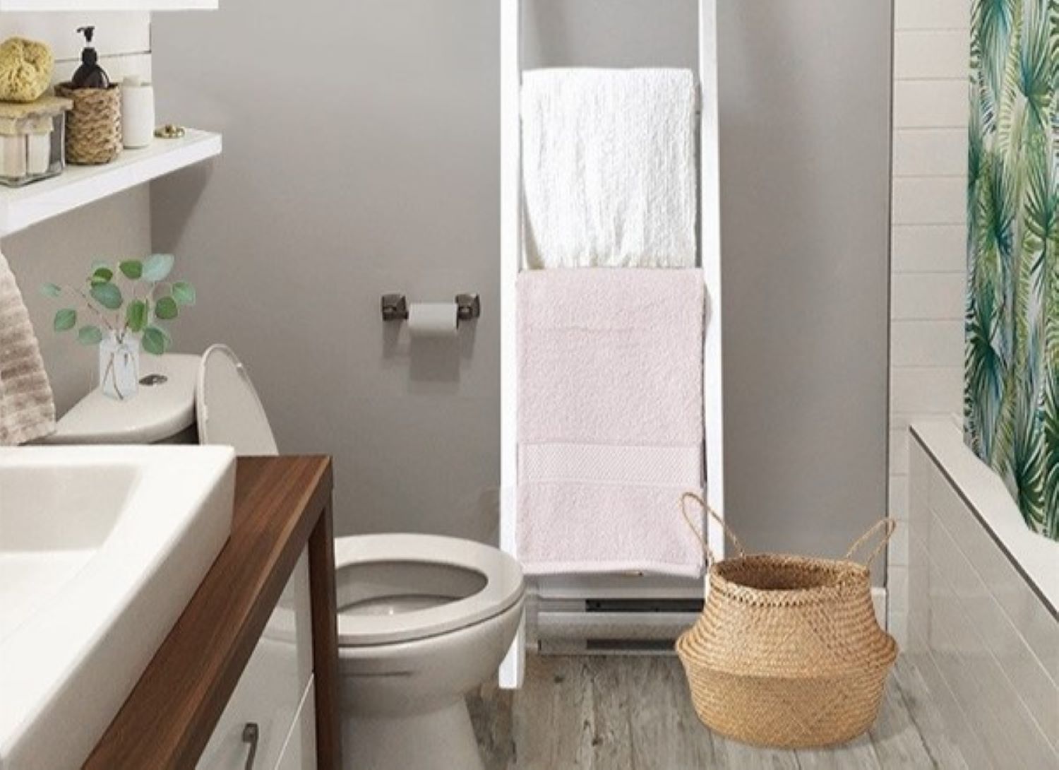 Les échelles font littéralement fureur en déco. Utilisées à toutes les sauces, elles peuvent servir de support à serviettes, à magasines ou encore à vêtements. Placée juste au dessus de vos cailles, vous vous assurerez d'avoir des serviettes chaudes à la sortie de votre douche. Joindre l'utile à l'agréable, on aime ça!