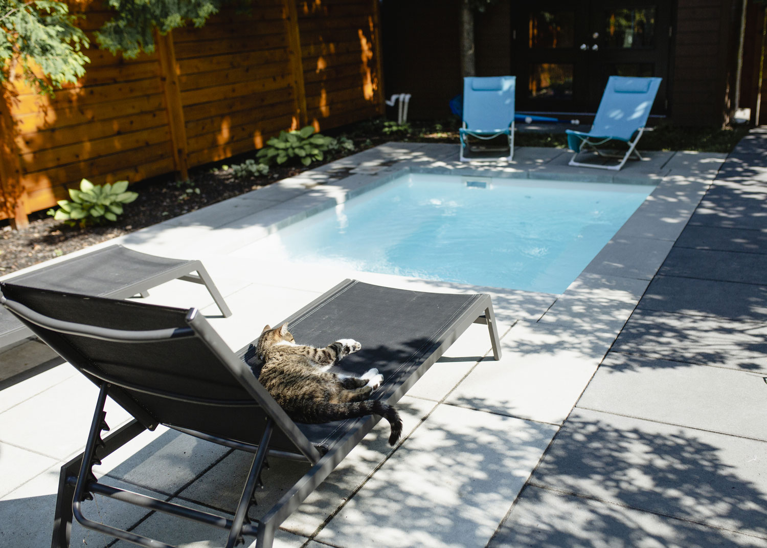 Pour notre 2e maison (où il n’y avait pas de piscine au départ), nous voulions éviter tous les désagréments de la première, alors le choix d’une petite piscine s’est imposé tout seul! Nous avons fait installer en 2016 une piscine de 10 X 19 pieds (3 X 5,7 mètres) qui a enfin tout changé nos étés. Depuis le début, beaucoup de gens semblaient intrigués par notre piscine « différente » (ou se demander si ça valait réellement la peine d’investir dans un tel projet pour un aussi petit résultat), mais on dirait que quelques années plus tard, la tendance est bien prise.