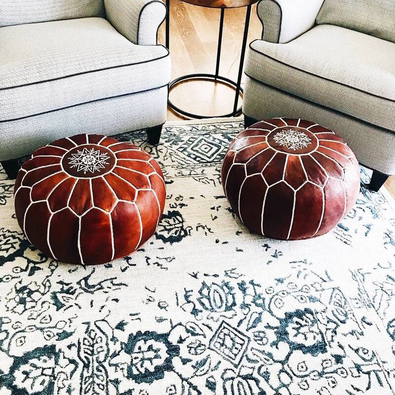 Souvent cousus à la main au Maroc et faits de véritable cuir, la plupart du temps en peau de chèvre (certaines compagnies en proposent aussi des véganes), les poufs marocains sont de véritables petites oeuvres d'artisanat. Ils se retrouvent aussi bien dans le salon, dans la salle de séjour que dans la chambre des adultes ou du bébé.