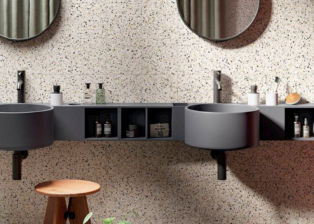 Le terrazo, ce revêtement souvent présent dans les villas italiennes et les palais vénitiens de la Renaissance, traverse les âges, rehaussant les sols de nos intérieurs contemporains. Les éclats de marbre, de granit, de verre ou de métal se parent aussi de belles couleurs donnant un cachet unique, et se pliant à tous les styles déco.