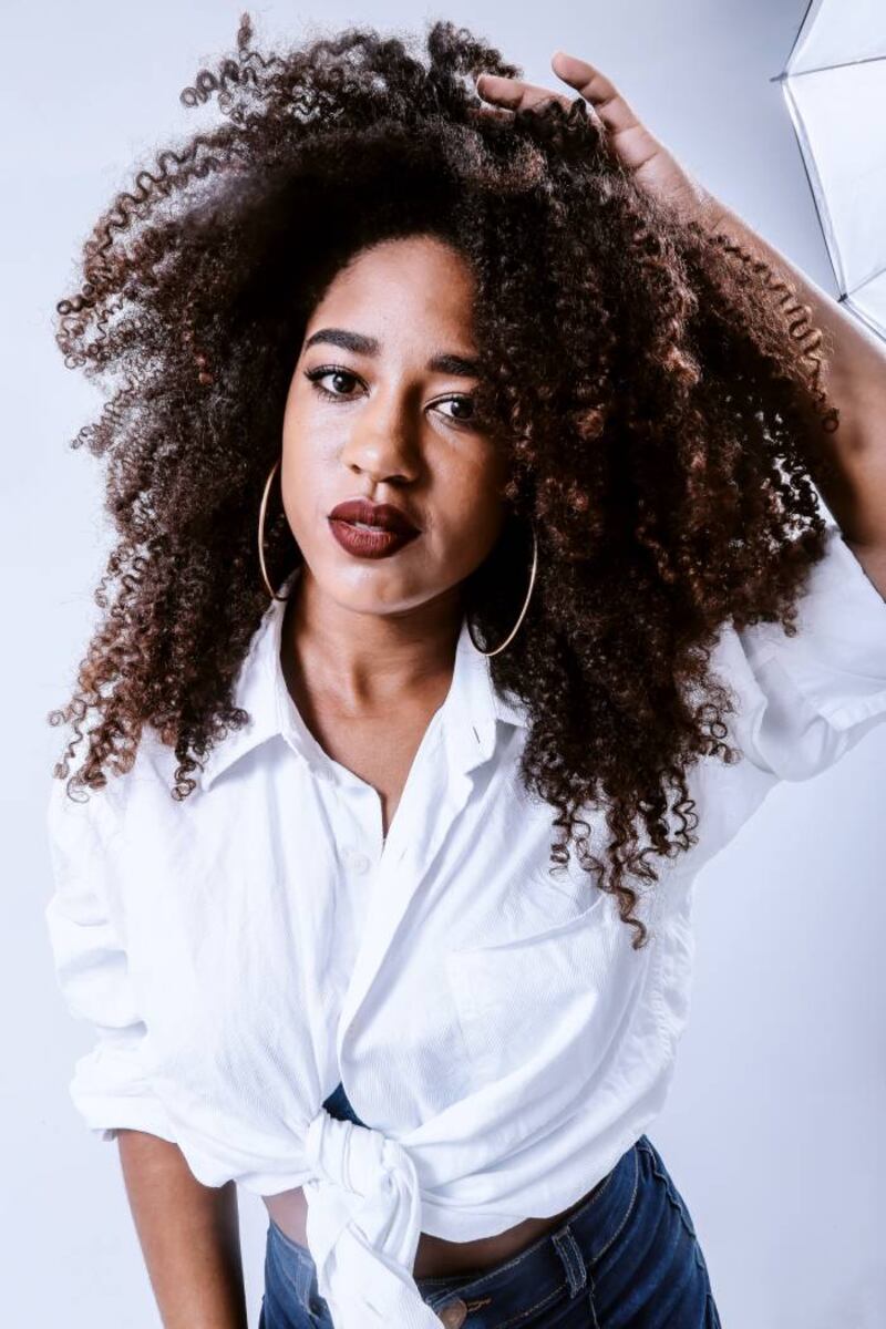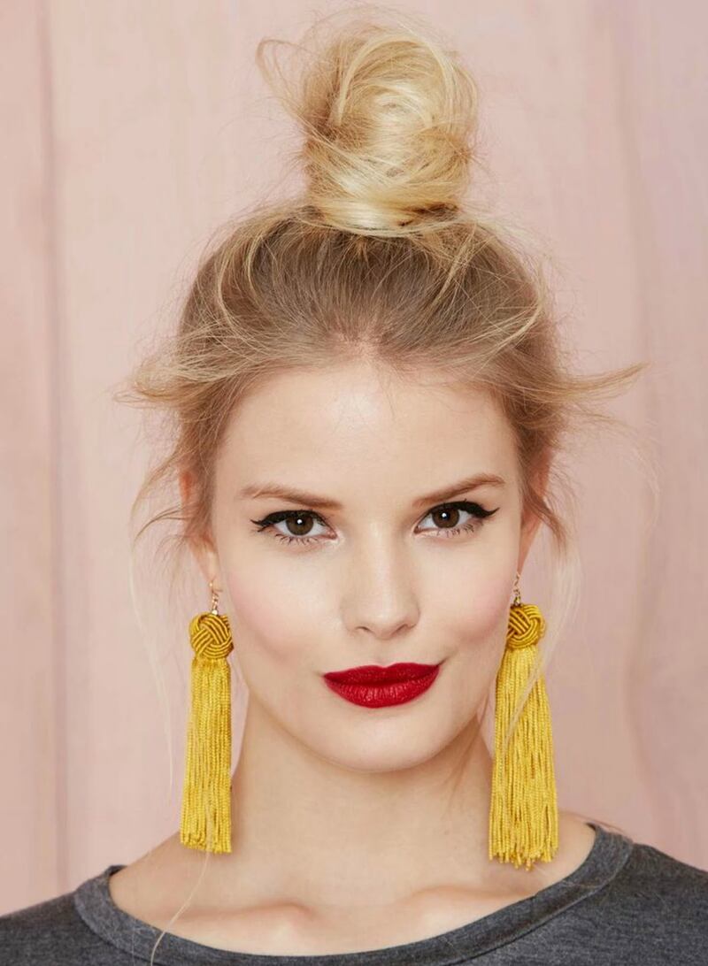 En attachant nos cheveux, on met en valeur les boucles d’oreilles tout en donnant un effet de longueur à la nuque.
