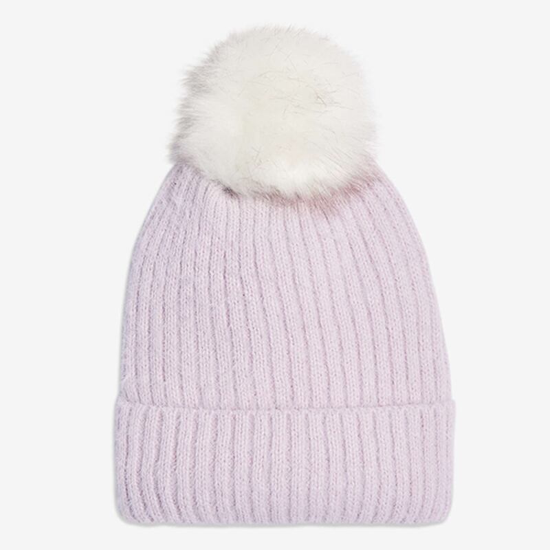 Complétez votre look avec ce bonnet côtelé au fini duveteux. Rien de plus mignon que son ponpon blanc!