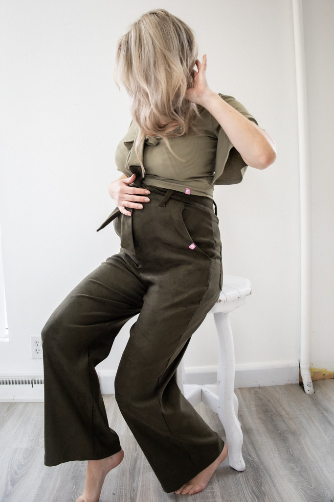 Pantalon en semi-suède vert, Lait de poule - 144,95 $