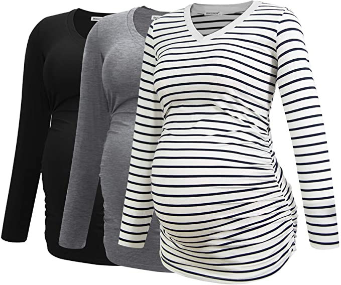 Amazon aussi regorge de jolies trouvailles au rayon de la maternité. La marinière est un classique qui se porte autant avec des jeans qu’avec un pantalon marine ou un legging. Enfilez par-dessus un veston pour un look de bureau classe.