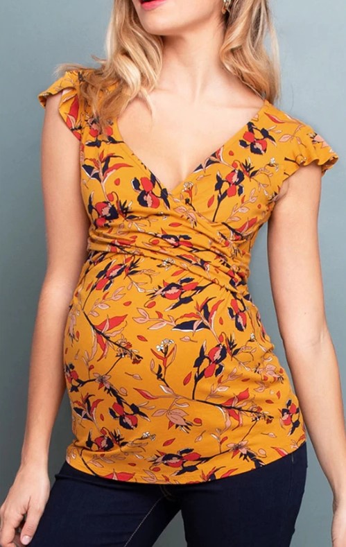 Haut d'allaitement jaune croisé pendant et après, Bedondine Maternité - 39,95 $