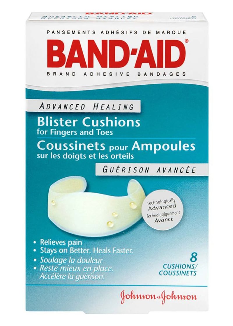 J’aime aussi les pansements adhésifs en gel, qui sont parfaits pour les orteils qui frottent dans les souliers et les ampoules sur les pieds.