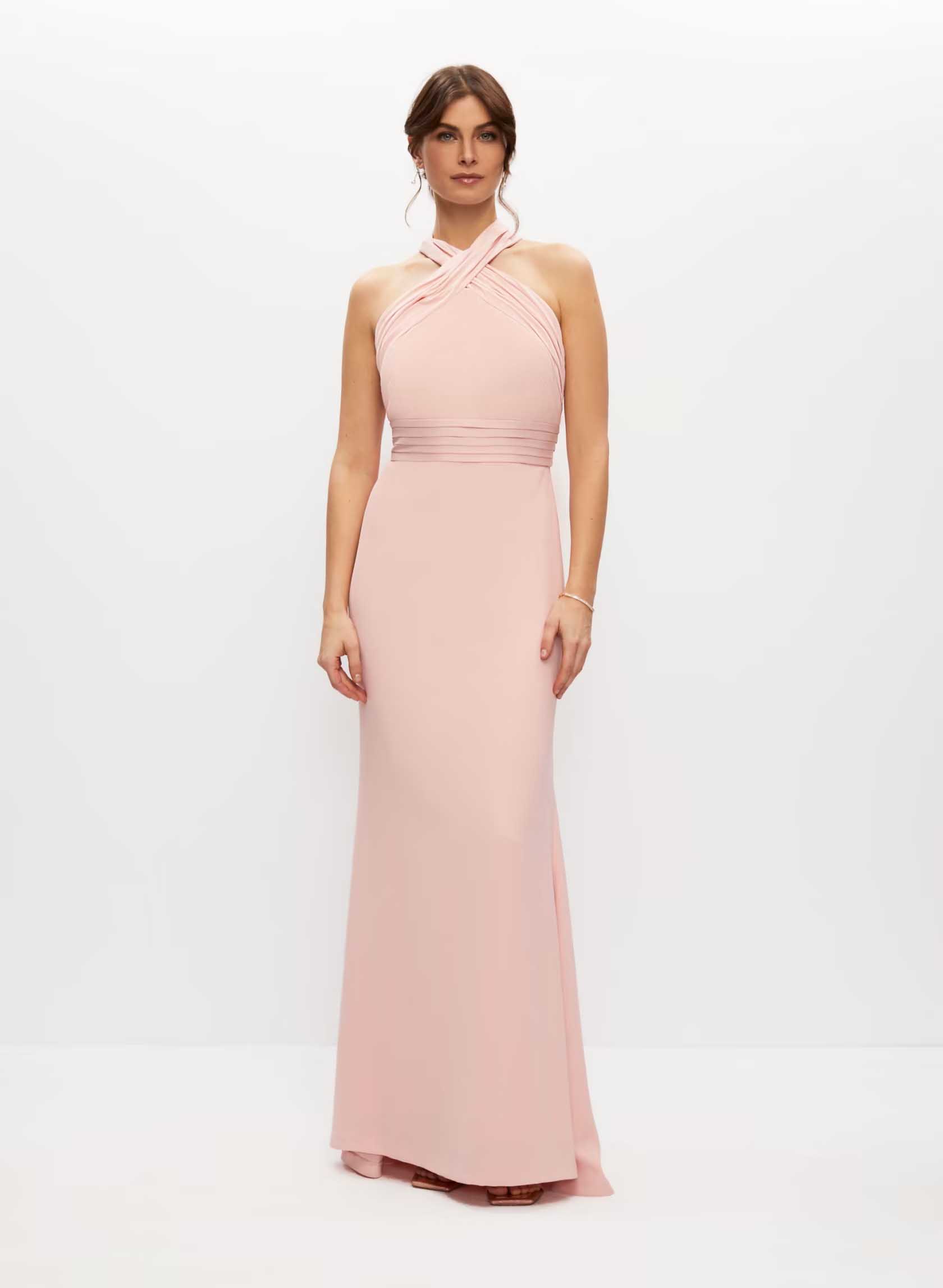 Le rose blush est d’une douceur incroyable, en plus de flatter tous les teints. Peu étonnant que le blush soit une couleur si prisée pour les mariages! Avec son long ruban à nouer et sa coupe longue, cette robe est toute indiquée pour les cérémonies chic.